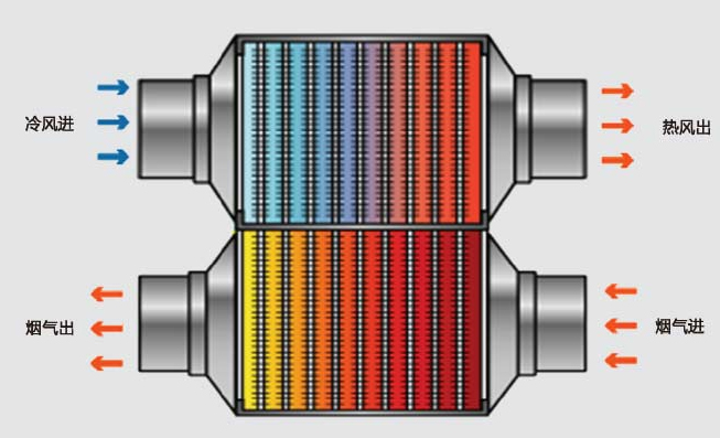 我公司开发制造的热管式换热器,是利用介质在真空的情况下,高温端蒸发吸热,低温端冷凝吸热的原理,研发出的热管换热器运行稳定,换热效率高、使用寿命长。为企业解决了烟气降温、余热回收、供热交换的能源浪费问题,且大大提高了经济效益。该换热器用于烟气脱硫除尘工程项目中,解决了除尘器效率低下、烟气带水等问题。